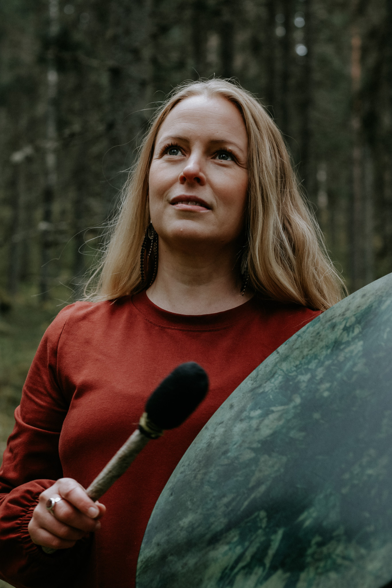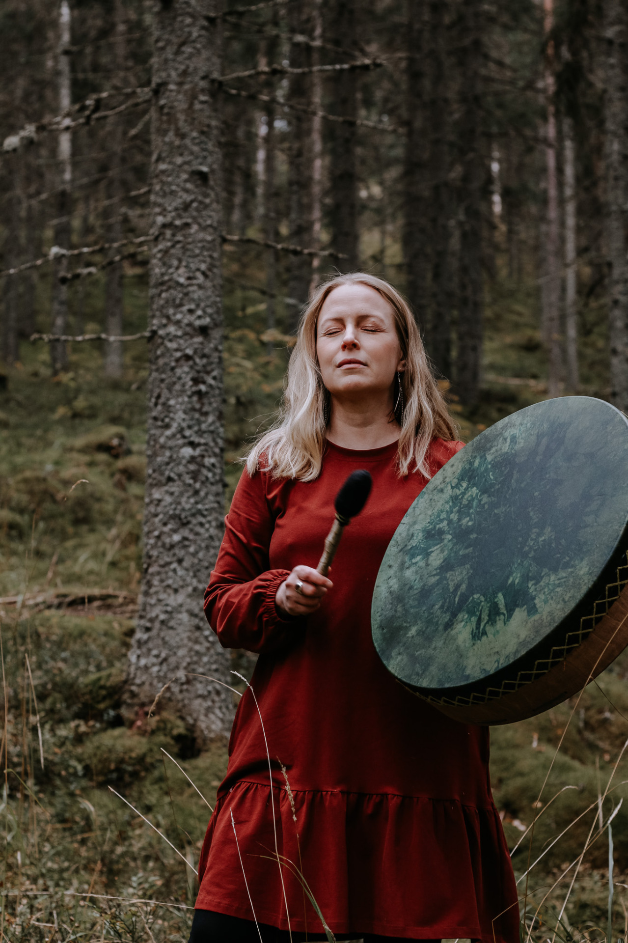 Tämä kaunis, väkevä Äiti Maan rumpu valitsi minut. Se tuli vastaan Rumpu-ukon sivuilla ja koko kehoni tunnisti sen. Jo ensi hetkistä saakka olen tuntenut, että rummusta tulee osa henkistä työtäni. Silti tarvittiin yksi online-rumpumatka, jossa tekniikka petti, ennen kuin uskalsin linjautua rummun kanssa ytimiäni myöten ja oivaltaa, miten voin palvella rummun kanssa entistä vahvemmin sinua.