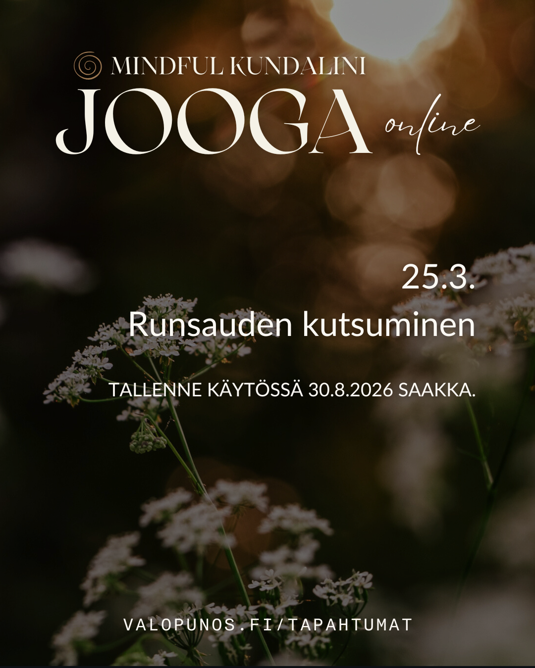 Mindful Kundalini -jooga sopii sinulle, joka kaipaat lempeää ja tietoista tapaa vahvistaa yhteyttä itseesi ja omaan kehoosi sekä helpottaa stressiä ja kuormitusta. Liikkeet ovat yksinkertaisia, ja ne sopivat myös aloittelijoille.