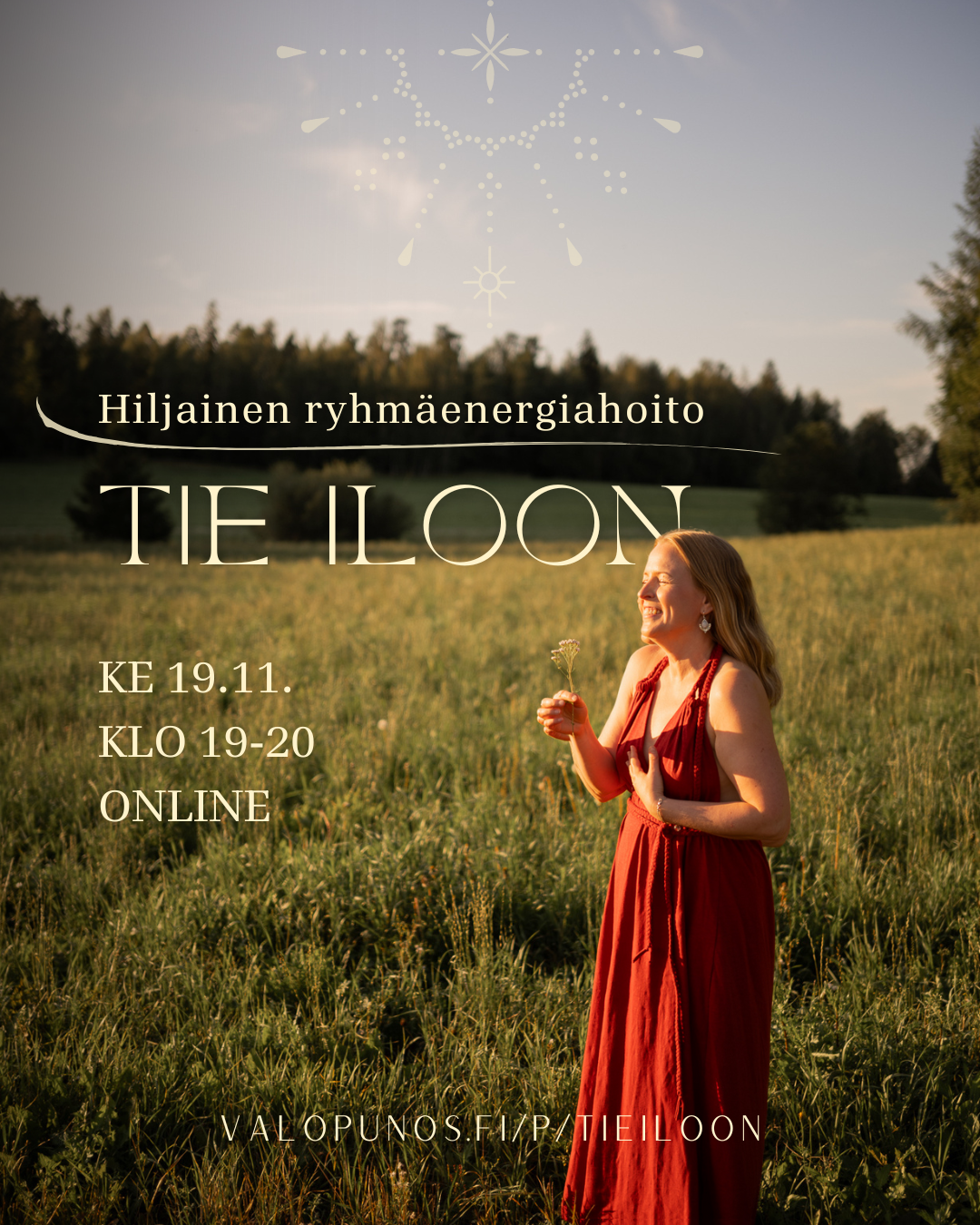 Jos sinä kuulet kutsun vahvistaa omaa tietäsi iloon, olet lämpimästi tervetullut tähän tiistai-illan hiljaiseen ryhmäenergiahoitoon!